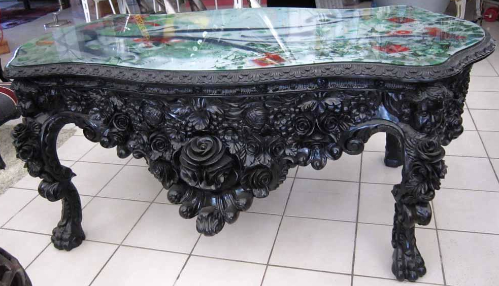 Le mariage du bois laqué et du verre peint en fait une pièce idéale pour un intérieur mêlant classique et art décoratif moderne — qu’il s’agisse d’un salon, d’une entrée ou d’une galerie d’exposition.